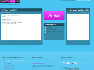 Anyway, prefixmycss.com is a great tool. First you want to write the code you plan on using on your website. Then go to www.prefixmycss.com and paste your CSS into the box. Then like magic, all vendor prefixes are added to your CSS3 code and safely replaces your old code. Cool huh?