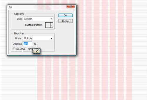 Okay, create a new layer here, then fill the layer with the pattern, Edit > Fill. This will be the baseline grid.