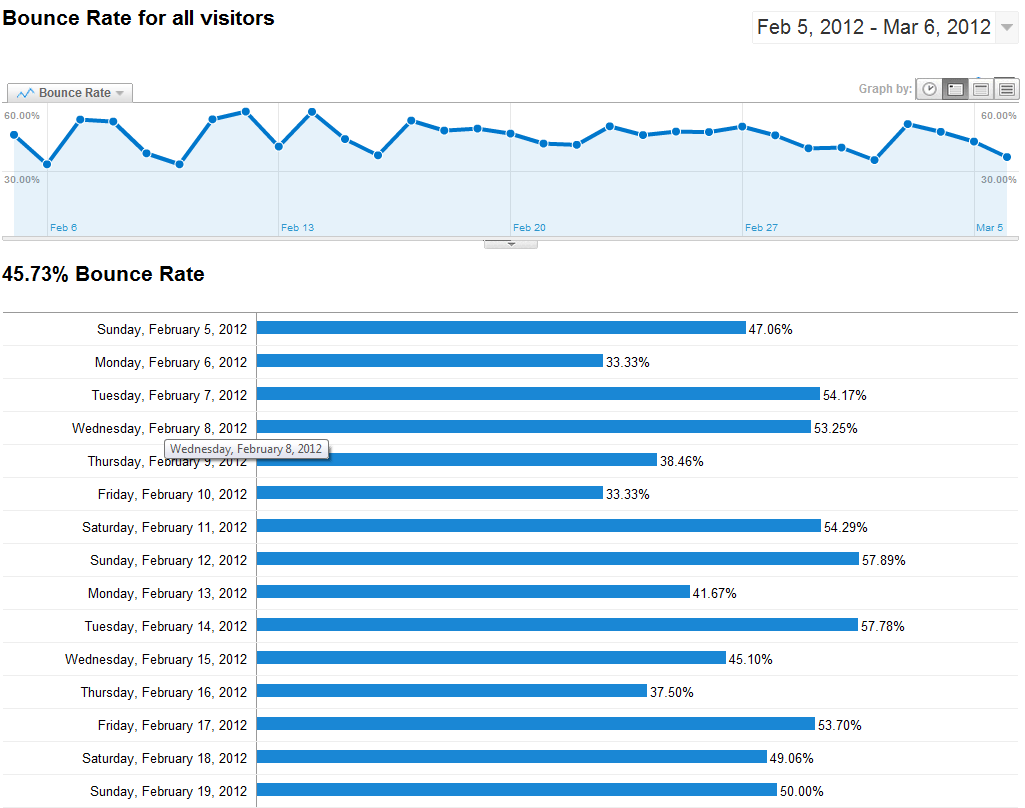 In these examples, 70 percent and 35 percent show both a high and a low bounce rate. However, these numbers can be deceiving. While 70 percent might be classified as a high bounce rate, it does mean visitors are finding and clicking through to the site initially. And while 35 percent is a low rate, falling below it into the 20-percentile means not many visitors are finding the site.